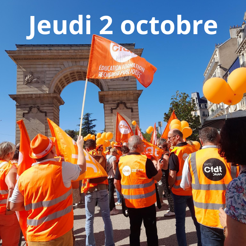 La CFDT appelle à une journée de mobilisation sur l’ensemble du territoire, le 2 octobre 2025, y compris par la grève et la manifestation.