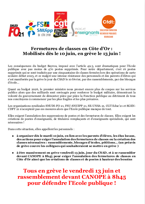 Mardi 10 juin 2025, Mélanie G., notre collègue assistante d’éducation au collège Françoise Dolto de Nogent en Haute-Marne, a été tuée par un élève du collège. Pour la CFDT Éducation Formation Recherche Publiques, tous les personnels doivent pouvoir lui rendre hommage et se recueillir.