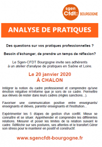 Des questions sur vos pratiques professionnelles ? Besoin d'échanger, de prendre un temps de réflexion? Le Sgen-CFDT Bourgogne vous invite à des groupes d'analyse de pratiques en Saône et Loire.